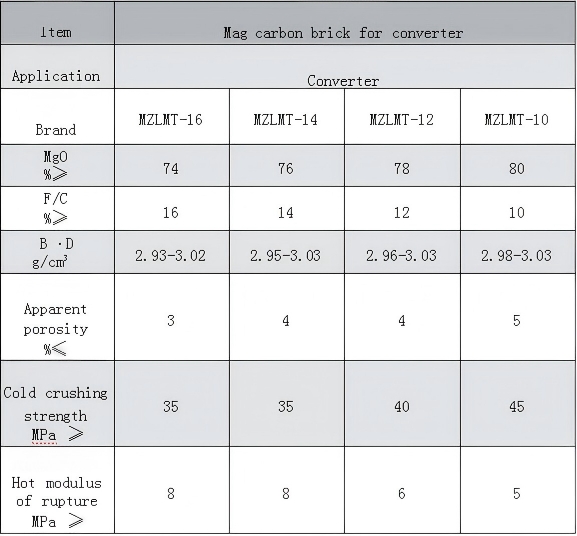 Converter magnesium carbon bricks